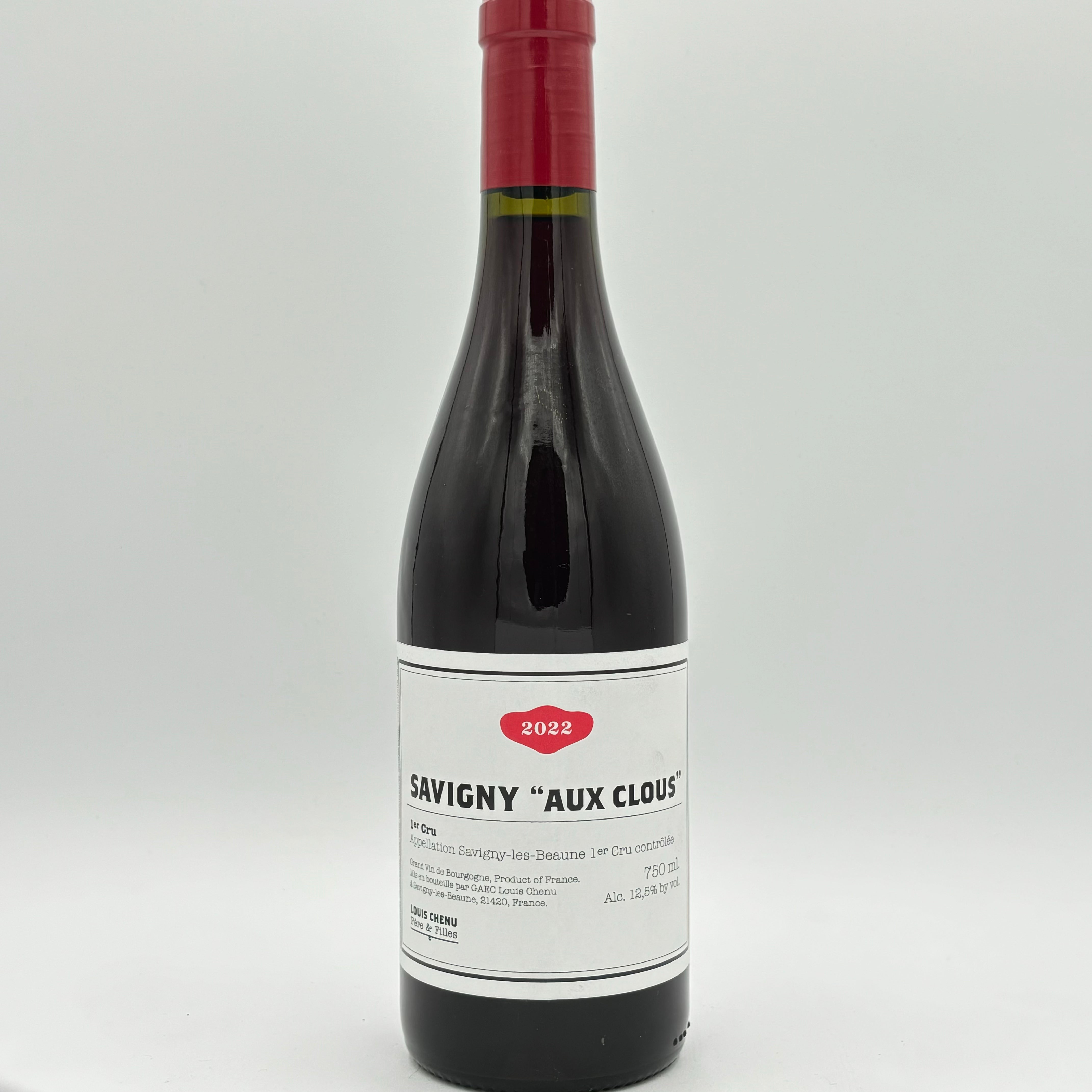 The 2022 'Aux Clous' 1er Cru expresses the elegance and finesse typical of Savigny-lès-Beaune. This wine offers bright red berry aromas—cherry, raspberry, and subtle floral notes—layered with hints of spice and forest floor. On the palate, it is fresh and vibrant, with silky tannins and a refined mineral backbone that reflects the vineyard's limestone soils. A harmonious, graceful Pinot Noir with excellent aging potential.